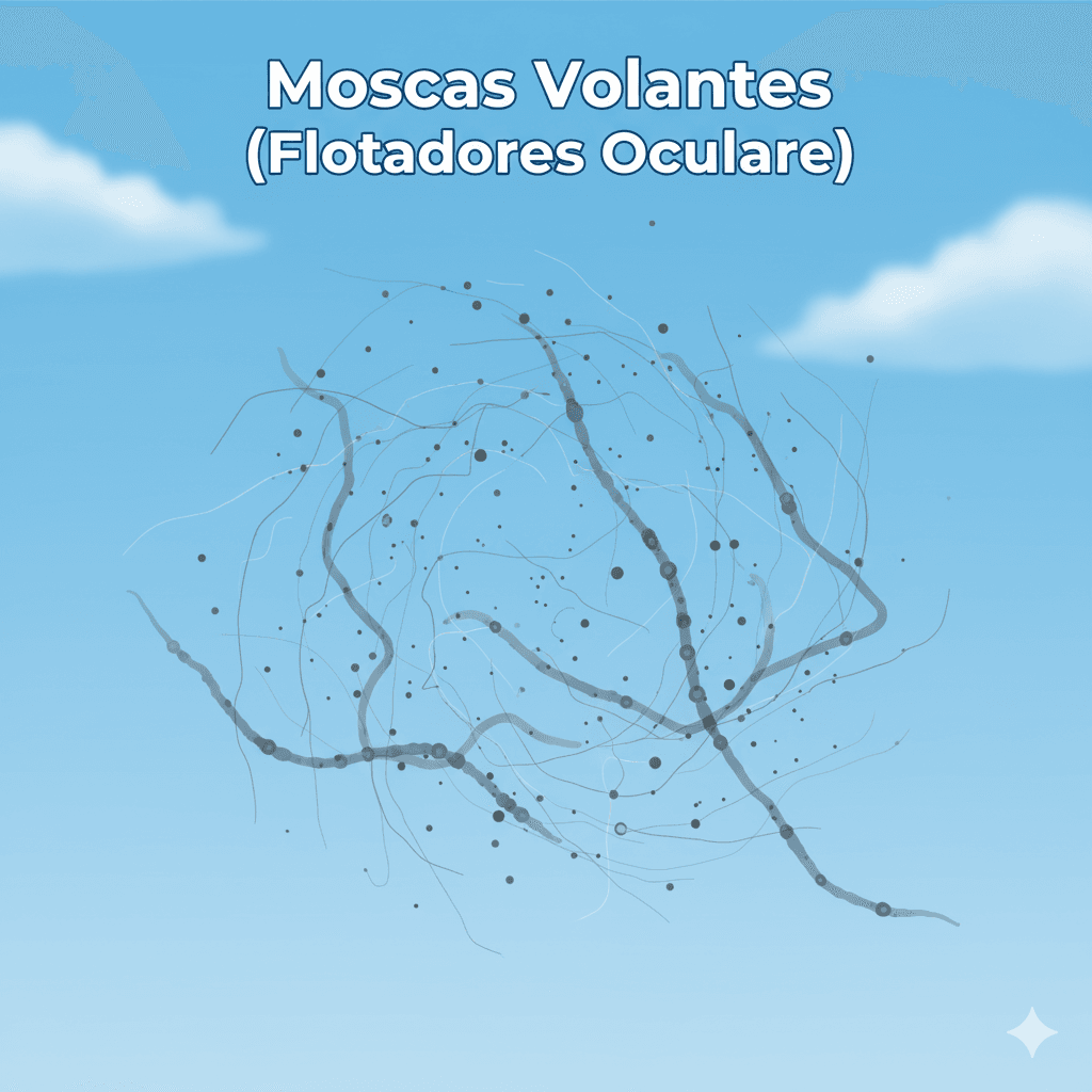 Muchas personas ven pequeños puntitos o hilos flotando en su campo visual. Estos se llaman miodesopsias o “moscas volantes”. Generalmente son benignas, pero si aparecen de forma repentina acompañadas de destellos luminosos, puede indicar: